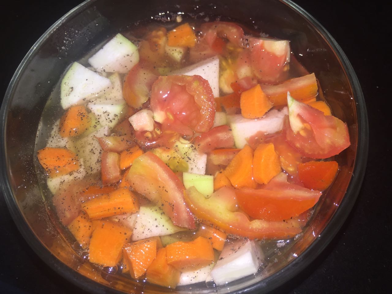 Take a microwave safe bowl and put all the vegetables in it and add water